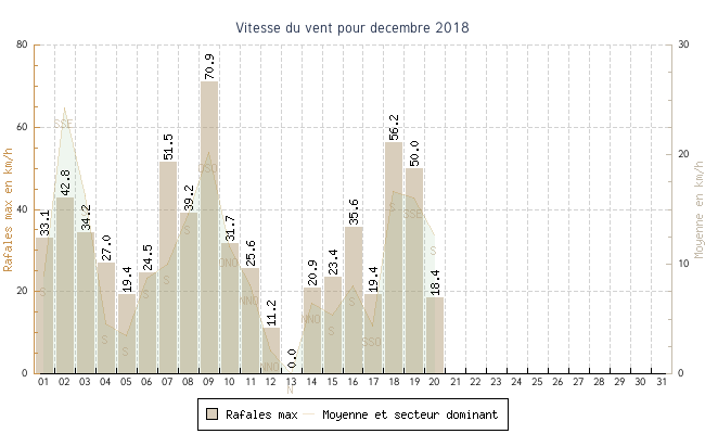 | min | max | moy | Vitesse (rafales) | Secteur | ||
